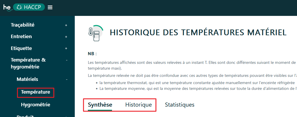 - 1 - Vérification de l'historique des températures sur le BO (Historique et Synthèse)