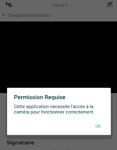 L'autorisation d'utilisation de l'appareil photo voir d'utiliser le stockage de la tablette n'est plus actif.
