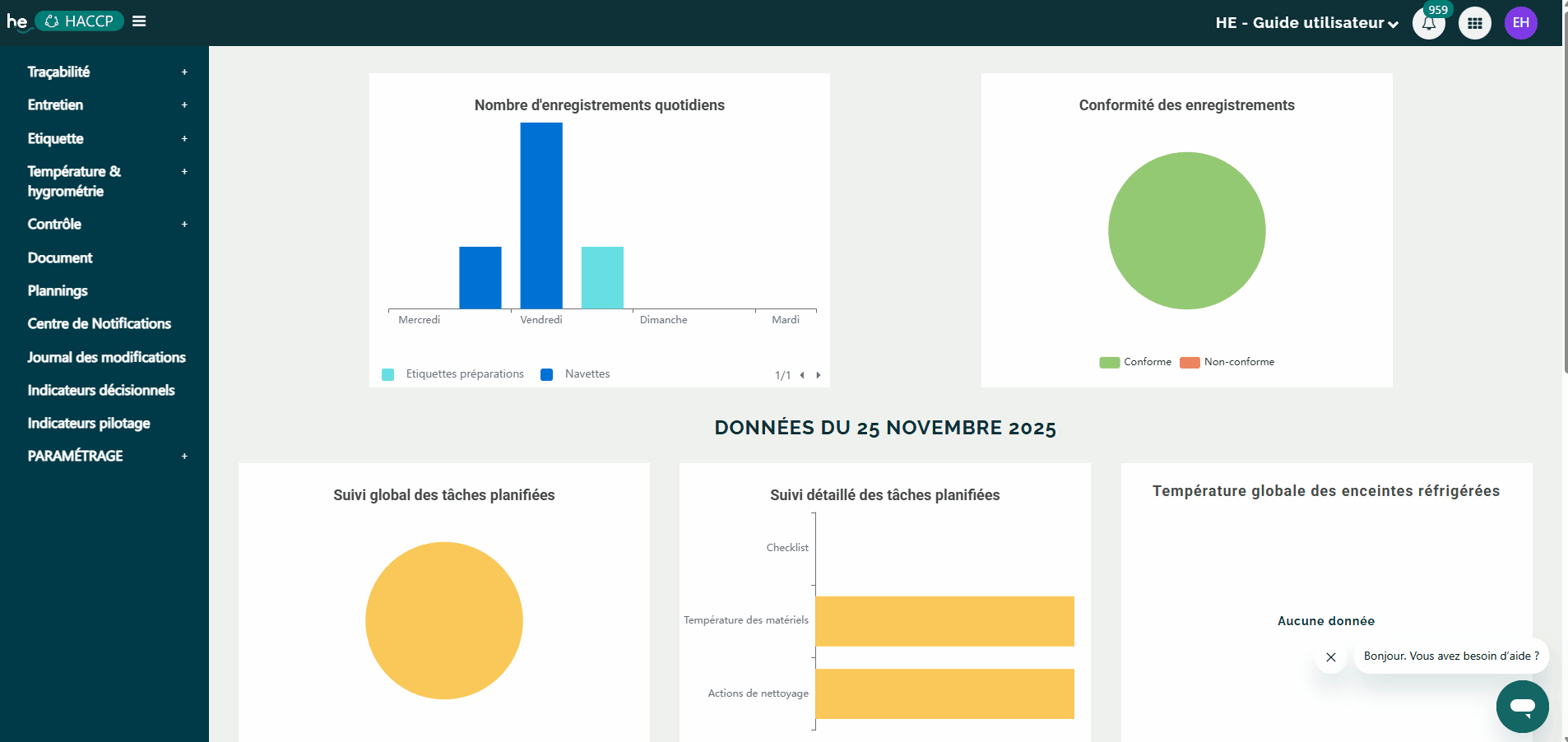 Vous verrez ici tous les enregistrements réalisés depuis le début de l'utilisation de l'application en utilisant les filtres de date.