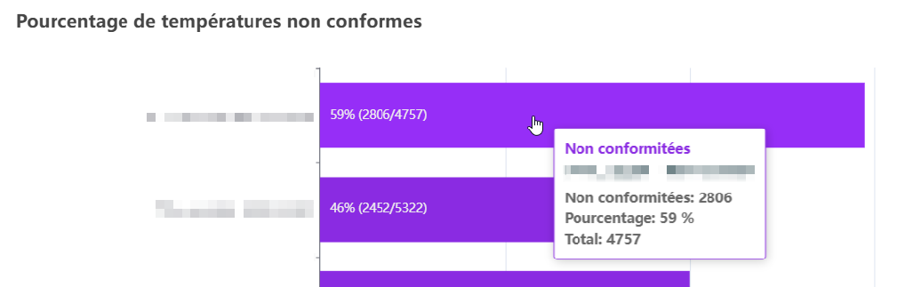 Ici, sur 4757 relevés de température sur le site ou le matériel concerné, 2806 sont non conformes, soit 59% des relevés.