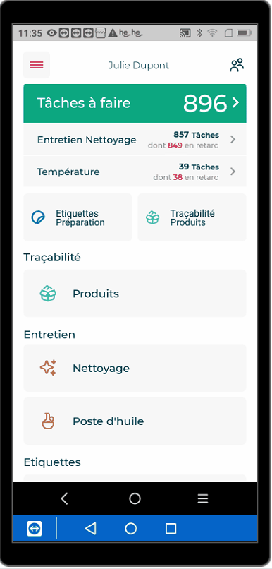Dans cette partie, il n'est possible de ne valider que des tâches qui ont été prévues dans le planning sur le back-office (tout savoir sur le paramétrage du plan de nettoyage).
